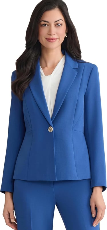 Kasper Stretch Crepe Peak-Lapel Blazer in Royal Blue: This blazer nails the "Glamoratti" architecture with peak lapels and a saturated electric blue hue that brightens the complexion instantly.